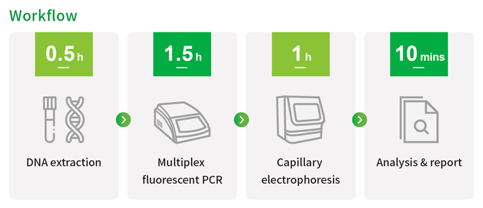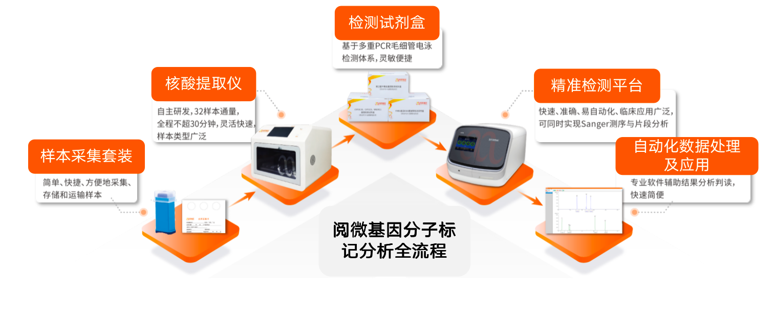 检测流程尤其简单便捷,一名技术人员可以完成多种项目的全部操作,从DNA到取得结果2.5h 即能完成,人工只需 20 分钟。